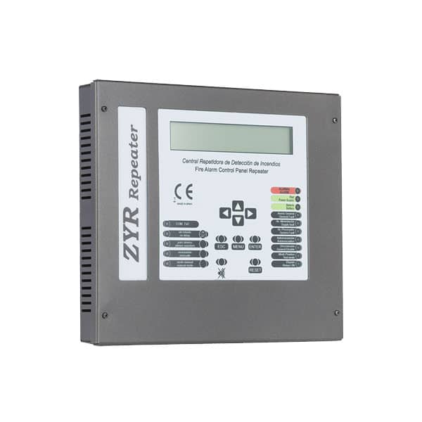 The LYON / ZAFIR / COMPACT Lyon control panel allows to connect up to 15 repeaters, using a 4 wires of 1,5 mm2 connection (two for supply and two for communication for RS485 line). The two wires of the RS485 line will be connected from the control panel to the corresponding repeaters. The repeater wiring is realized like the figure attached.